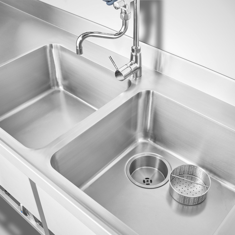 - 2 sinks: W 600 x D 600 x H 300 mm, positioned in the centre