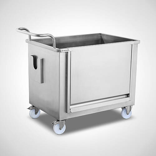 Stainless steel trolley made of chrome nickel steel 18/10 material no. 1.4301.
