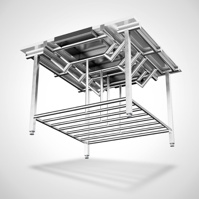 - Mittig Edelstahl-Tischplatte in 2 mm Materialstärke
