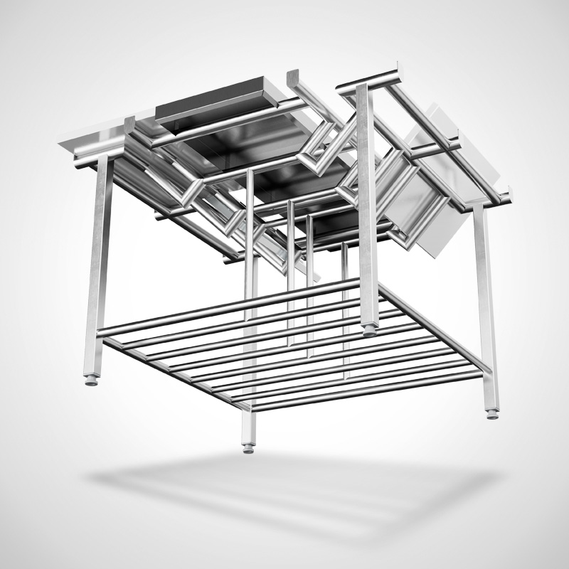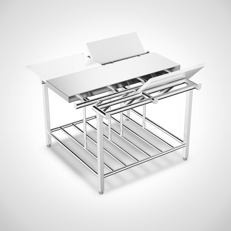 - Rundrohr-Rahmengestell mit spezieller Vorrichtung zum ergonomischen Aufstellen der HDPE-Schneidplatte beim Reinigungsvorgang