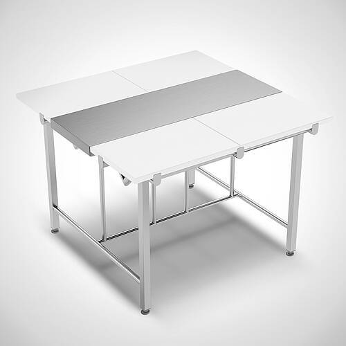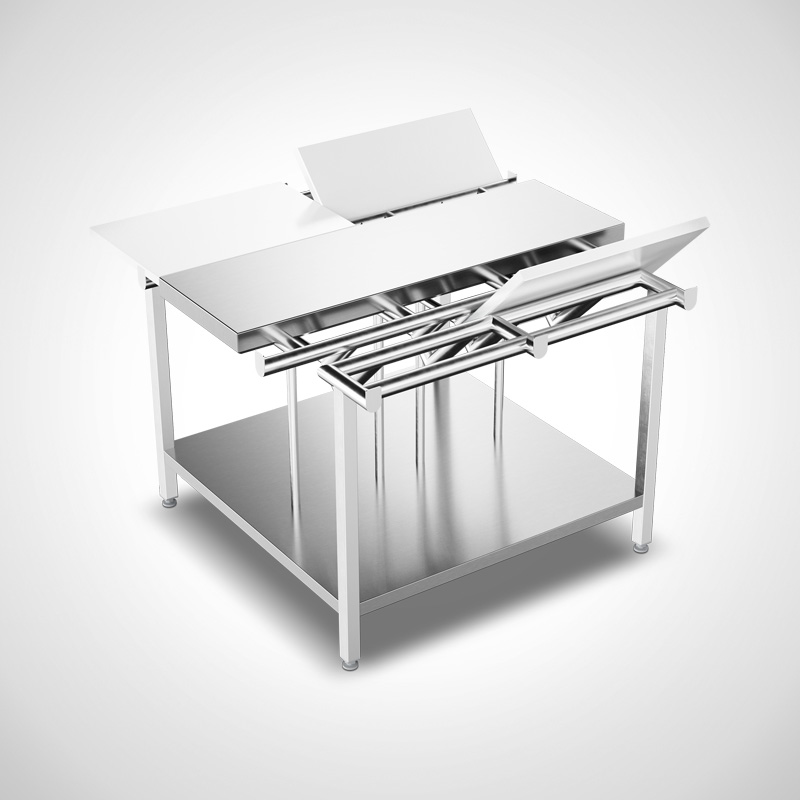 - Rundrohr-Rahmengestell mit spezieller Vorrichtung zum ergonomischen Aufstellen der HDPE-Schneidplatte beim Reinigungsvorgang