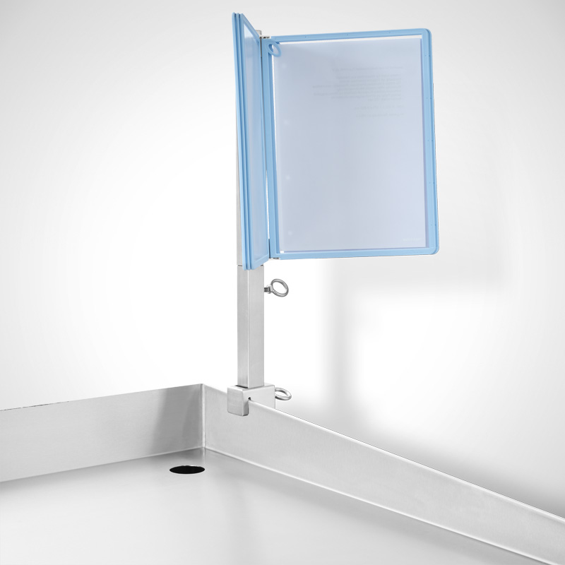 - Rechtsseitig mit höhenverstellbarer Sichttafelsystem-Halterung (5 Stück)