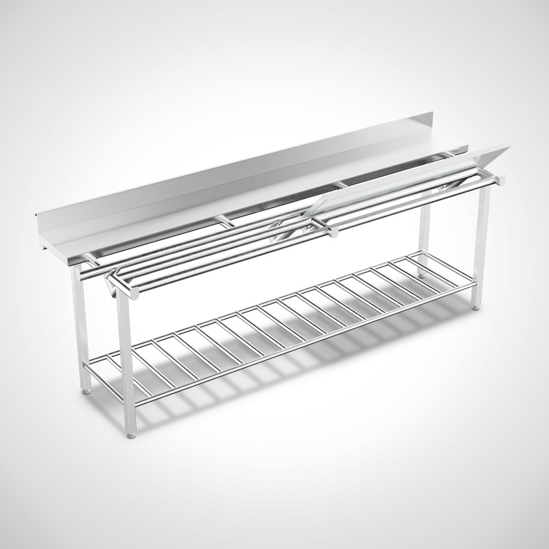 - Rundrohr-Rahmengestell mit spezieller Vorrichtung zum ergonomischen Aufstellen der HDPE-Schneidplatte beim Reinigungsvorgang