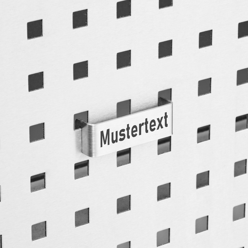 Die Beschriftungs-Anhänger, lieferbar in zwei Breiten: Typ BA-60 (60 mm) und Typ BA-90 (90 mm), ermöglichen eine klare, strukturierte und langlebige Kennzeichnung an MOHN Loch- und Werkzeugwänden. Sie sorgen für Übersichtlichkeit und unterstützen effiziente Arbeitsabläufe, indem Werkzeuge, Bereiche oder Ablagepositionen eindeutig markiert werden können.