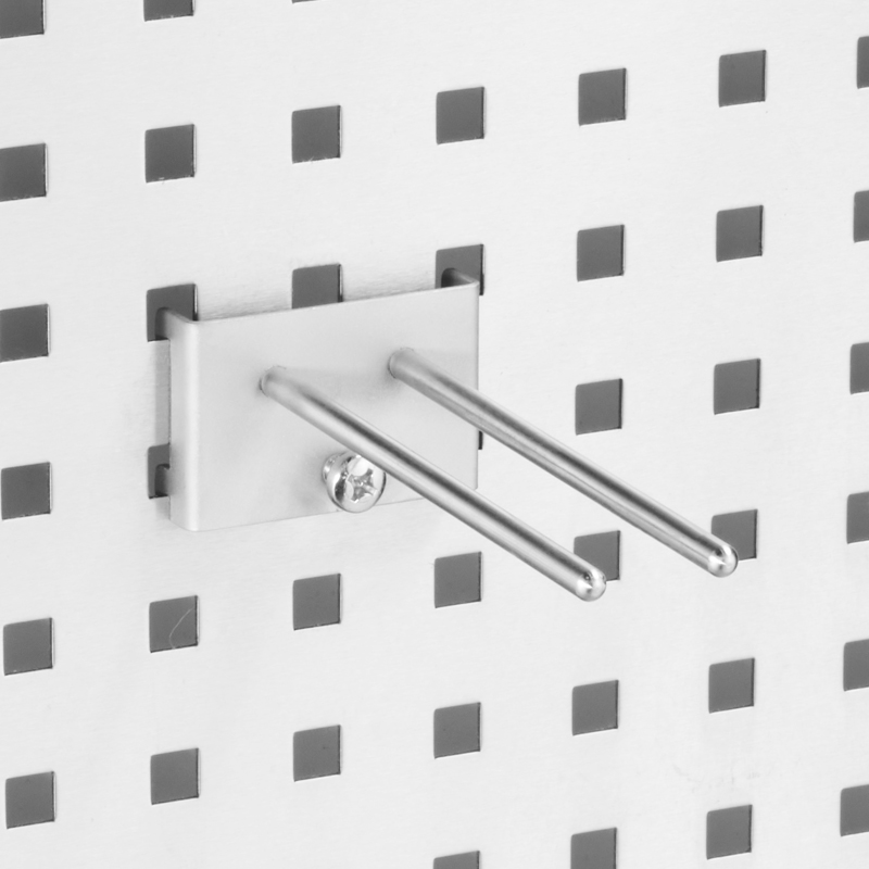 *Bei den Werkzeughaltern (Haken Ø 6 mm) für Lochwände beziehen sich die angegebenen Hakenlängen ausschließlich auf den geraden, horizontalen Teil des Hakens. Zusätzlich ist zu beachten, dass die Aufnahme des Rundstahlhakens eine Tiefe von 8,4 mm zur Lochwandseite aufweist.