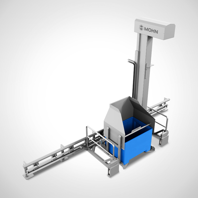 Die Ausführung der Hebe- und Kippvorrichtung wird durch die Art und Viskosität des Schüttgutes bestimmt und ggfs. durch spezielle Schütten, Trichter, Hubgabeln oder Hubplattformen erweitert. Somit lassen sich die Kippvorrichtungen für fast jede Anwendung anpassen.
