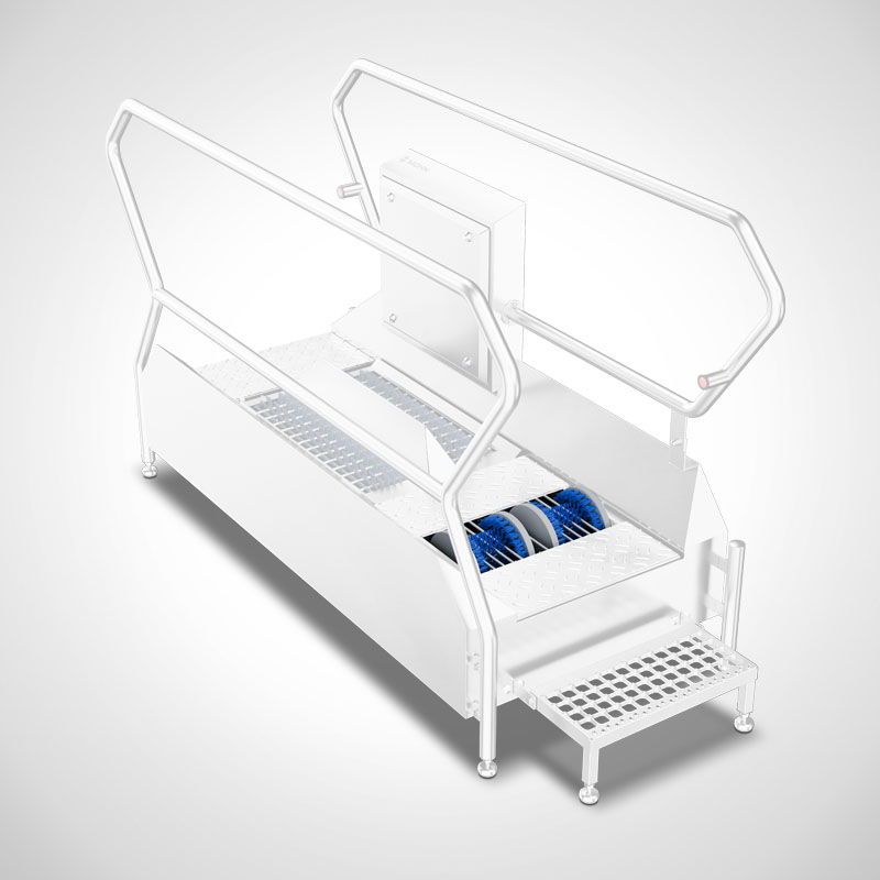 Bitte beachten: Dieses Sohlen- und Sohlenrand-Reinigungsmodul ist ausschließlich als Erweiterung für neu beauftragte Hygieneschleusen und Durchlauf-Sohlenreinigungsanlagen der Highline-Serie erhältlich.