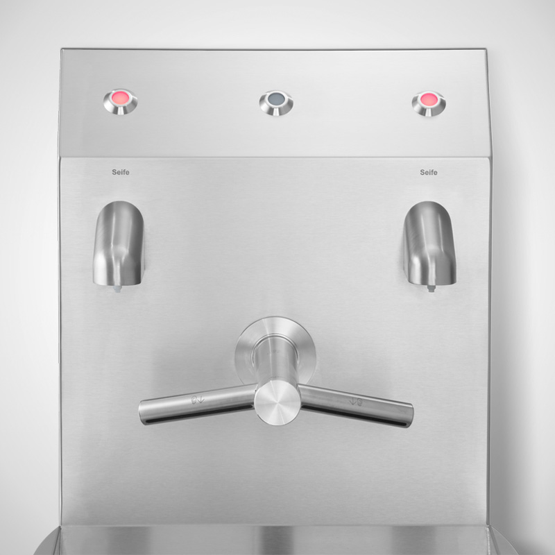 - 2 berührungslose Armaturen für Seifen- bzw. Desinfektionsapplikation