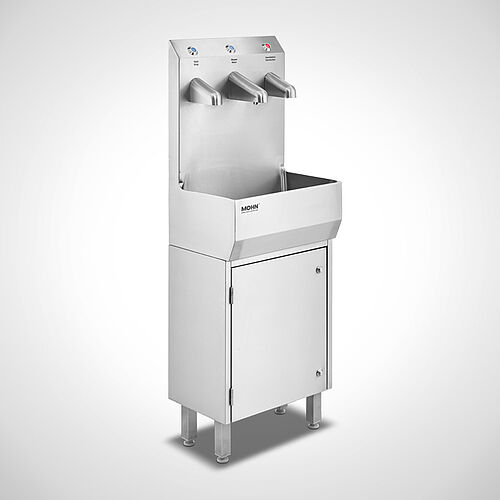 - Beispielprozess: Bei CC-I DT erfolgt nach dem Waschen die separate Händedesinfektion – ideal kontrolliert über einen 2-Hand-Desinfektionsautomaten mit elektrischem Drehkreuz zur sicheren Zugangsfreigabe.