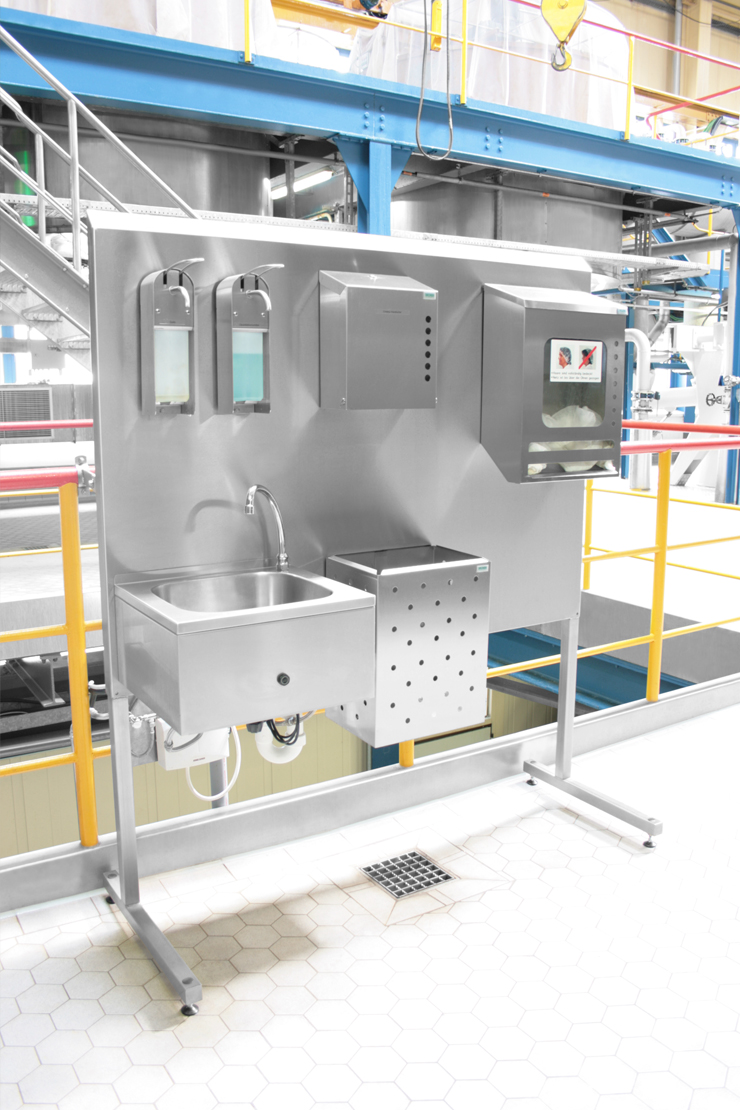 Handhygienelösung mit robuster Spritzschutzwand