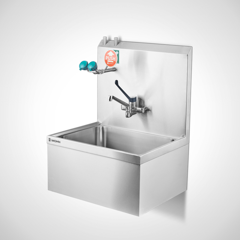 Wandhängender Teilewaschplatz Typ TW-K-W 40/40 SON mit optionalem Einhebelmischer und Augendusche, 25-60703-4.1