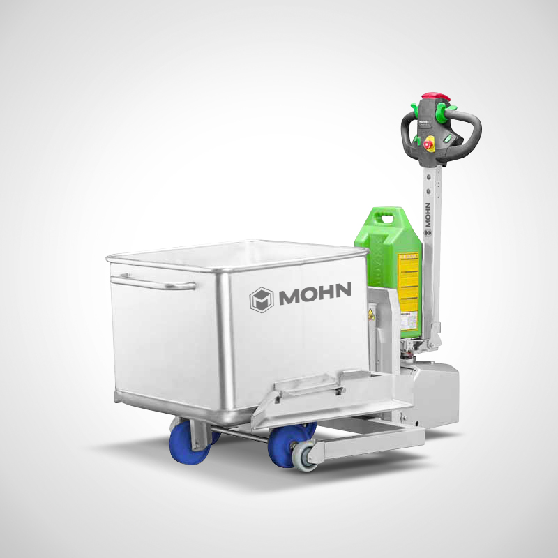 De elektrisch angetriebene Zieh- und Schiebehilfe aus Edelstahl wurde speziell für den ergonomischen Transport von 200 oder 300 Liter DIN 9797 für Hub- und Beschickungswagen (Kutterwagen) entwickelt. Ergonomisch, praktisch und sehr wendig können Firmen (meist) aus dem Lebensmittelbereich durch die Verwendung die Mitarbeiter entlasten und zugleich die Produktivität steigern.