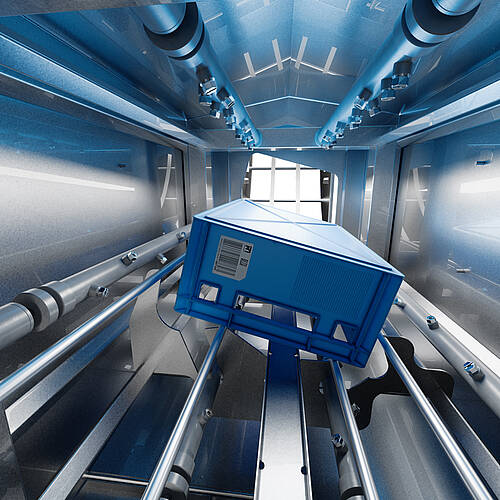 Eintank-Durchlaufwaschanlage: Reinigt bis zu 250 KIsten pro Stunde