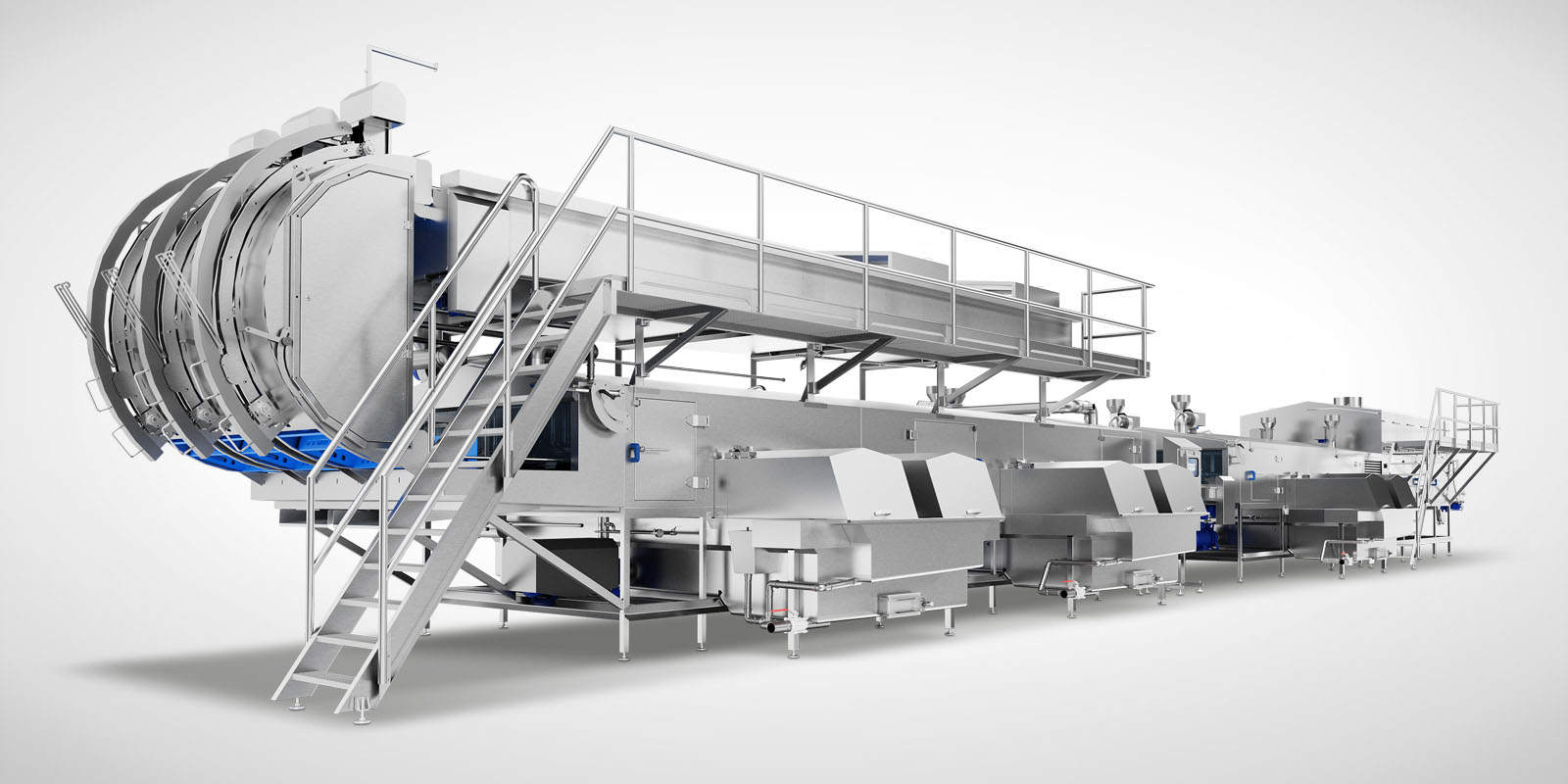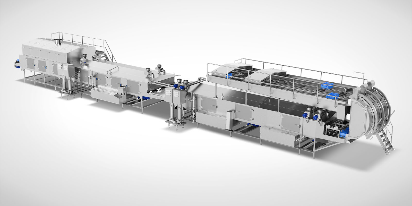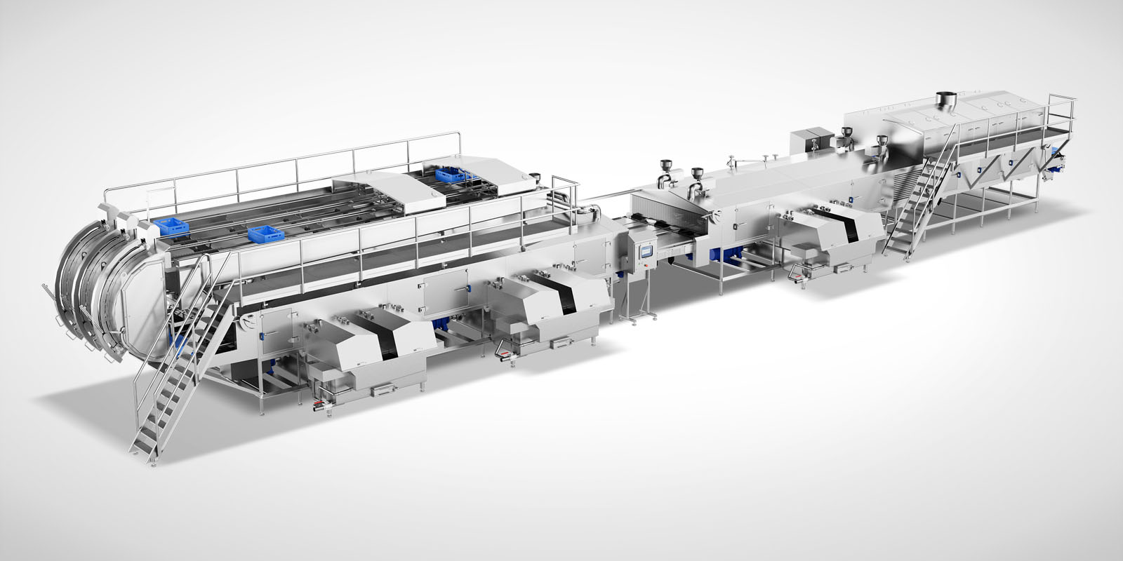 - Vorwaschzone 1 mit 2800 Liter Trommelfilter-Tank: Länge 2700 mm, Pumpenleistung 18.5 kW mit einer Umwälzung von 2500 ltr./m bei 3 bar
